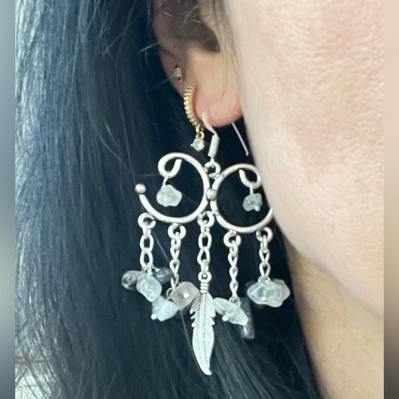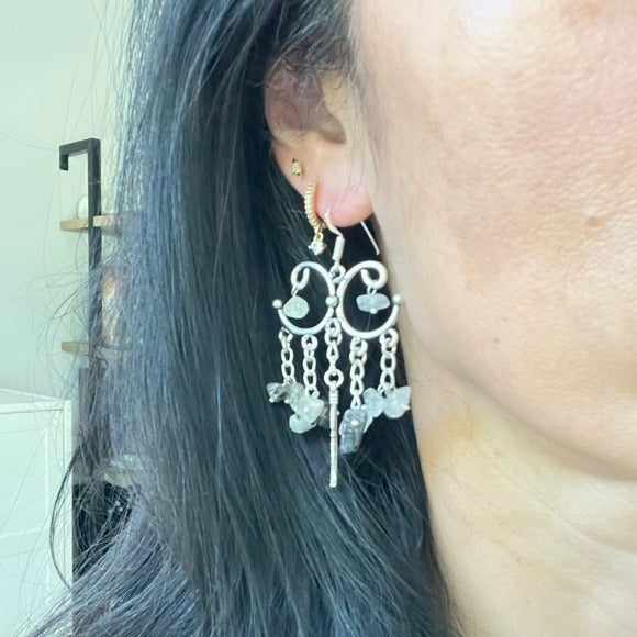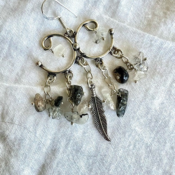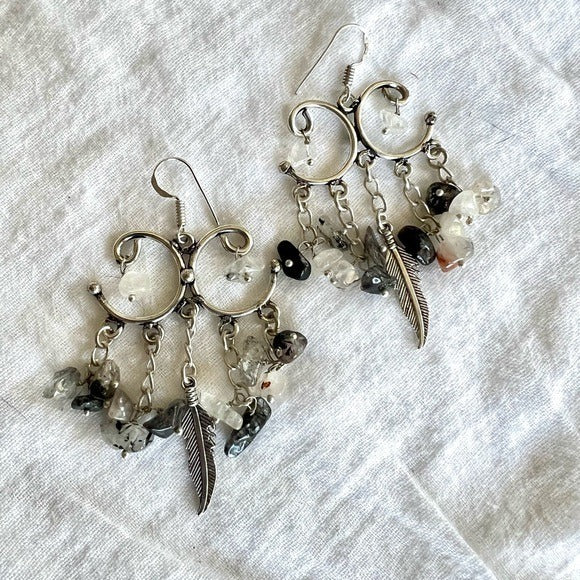 925 Fancy Feather Tourmalated Quartz Chandelier Earrings