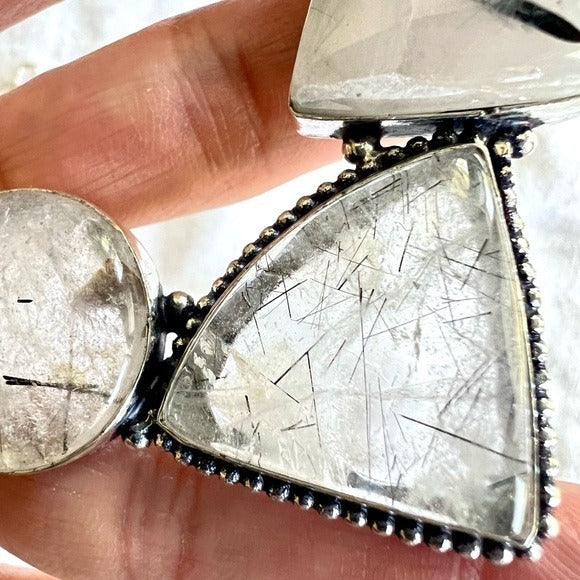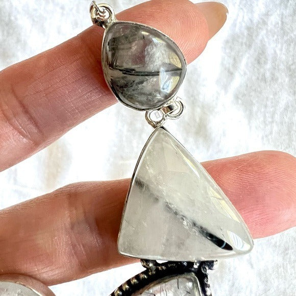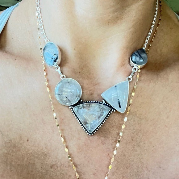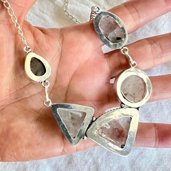 925 Geometric Tourmalated Quartz 5 Stone Necklace