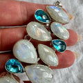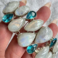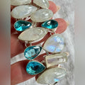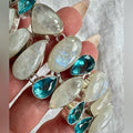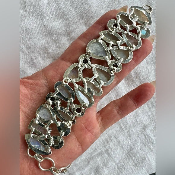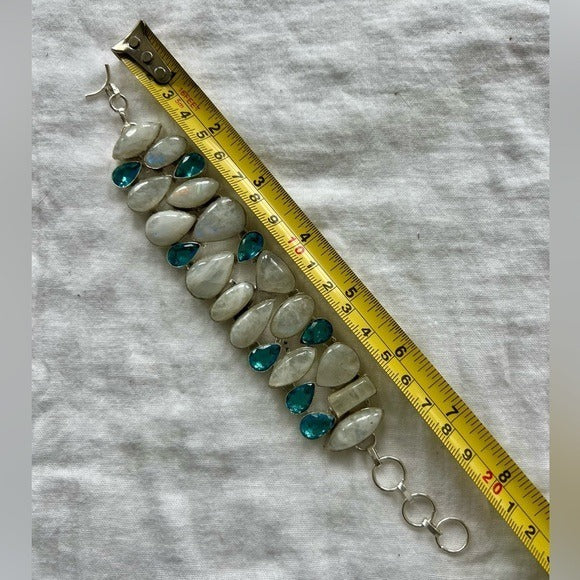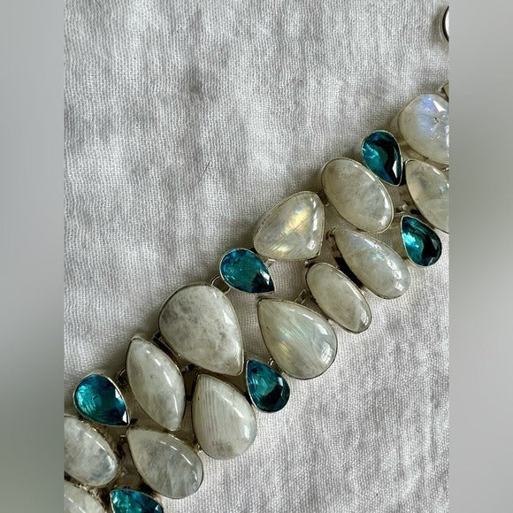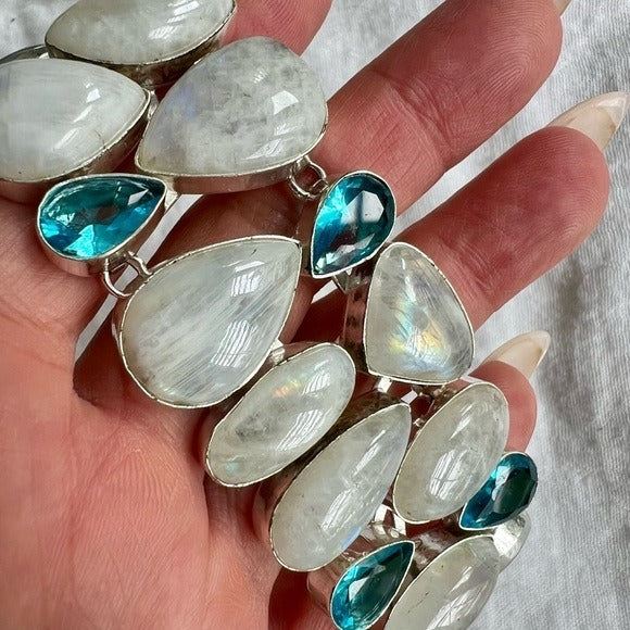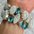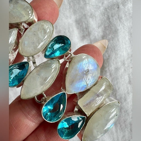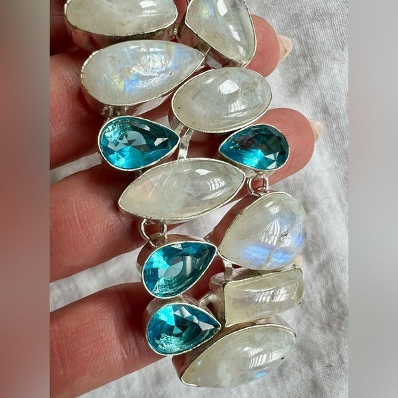 925 GODDESS Chunky Rainbow FLASH MOONSTONE + Blue Topaz Bracelet