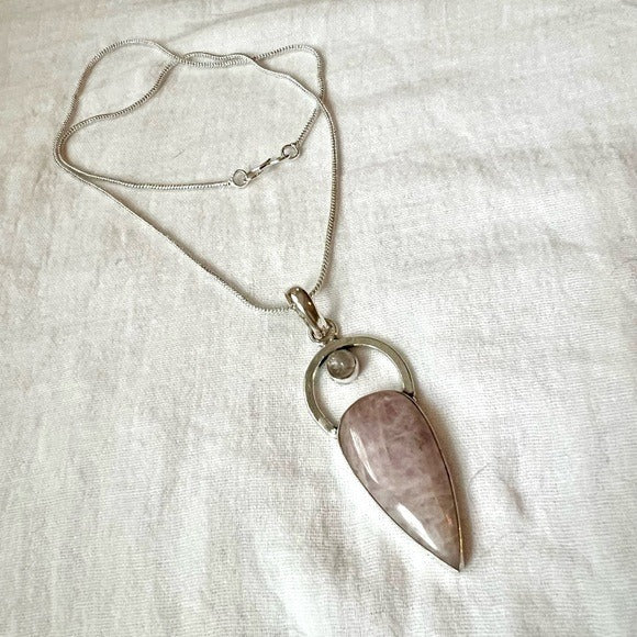 925 GORGEOUS Pale Lepidolite + Rose Quartz Pendant Necklace