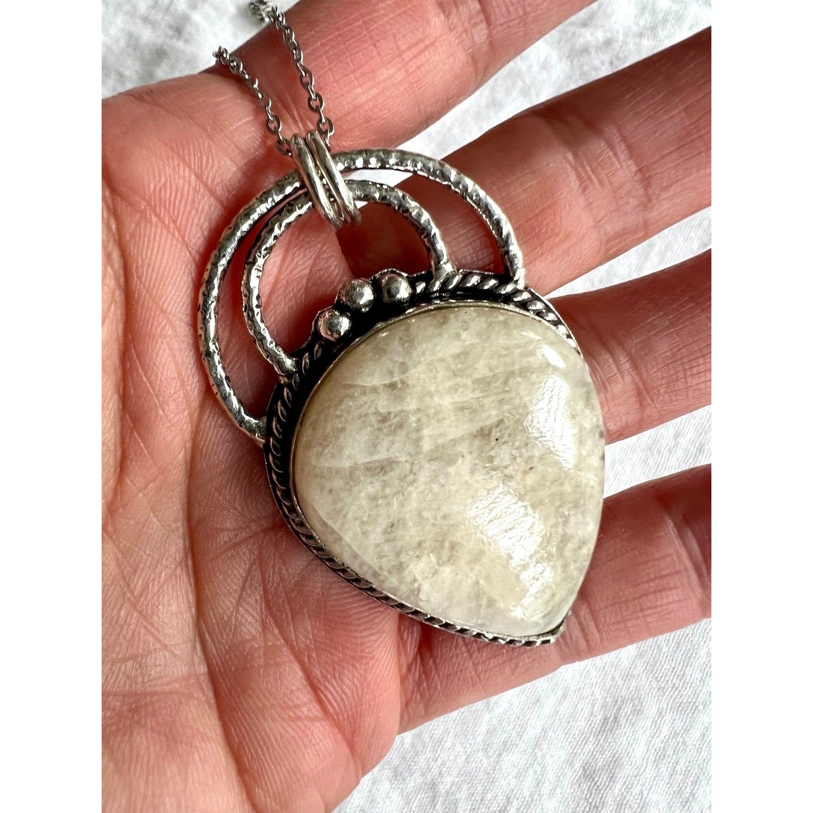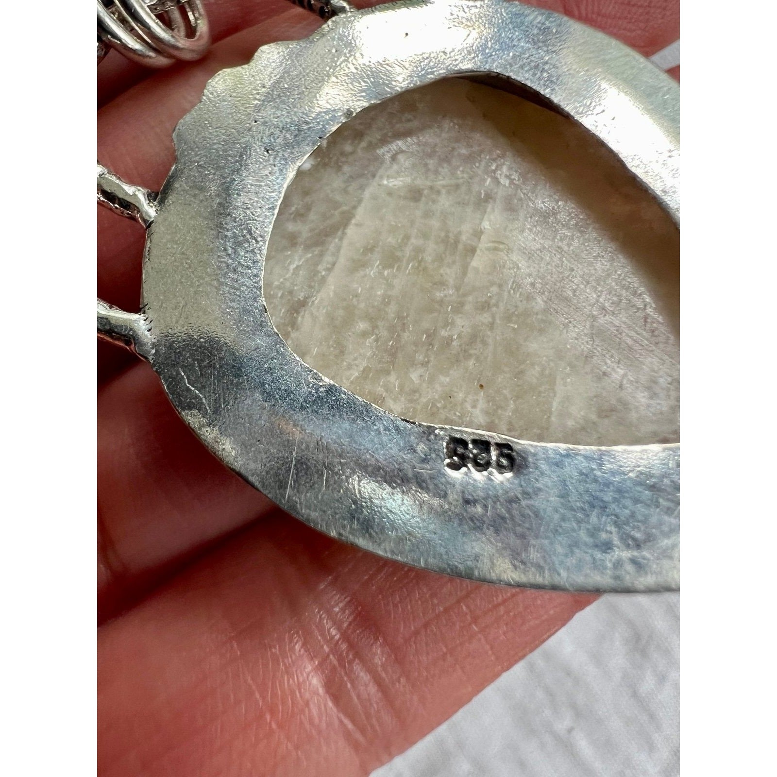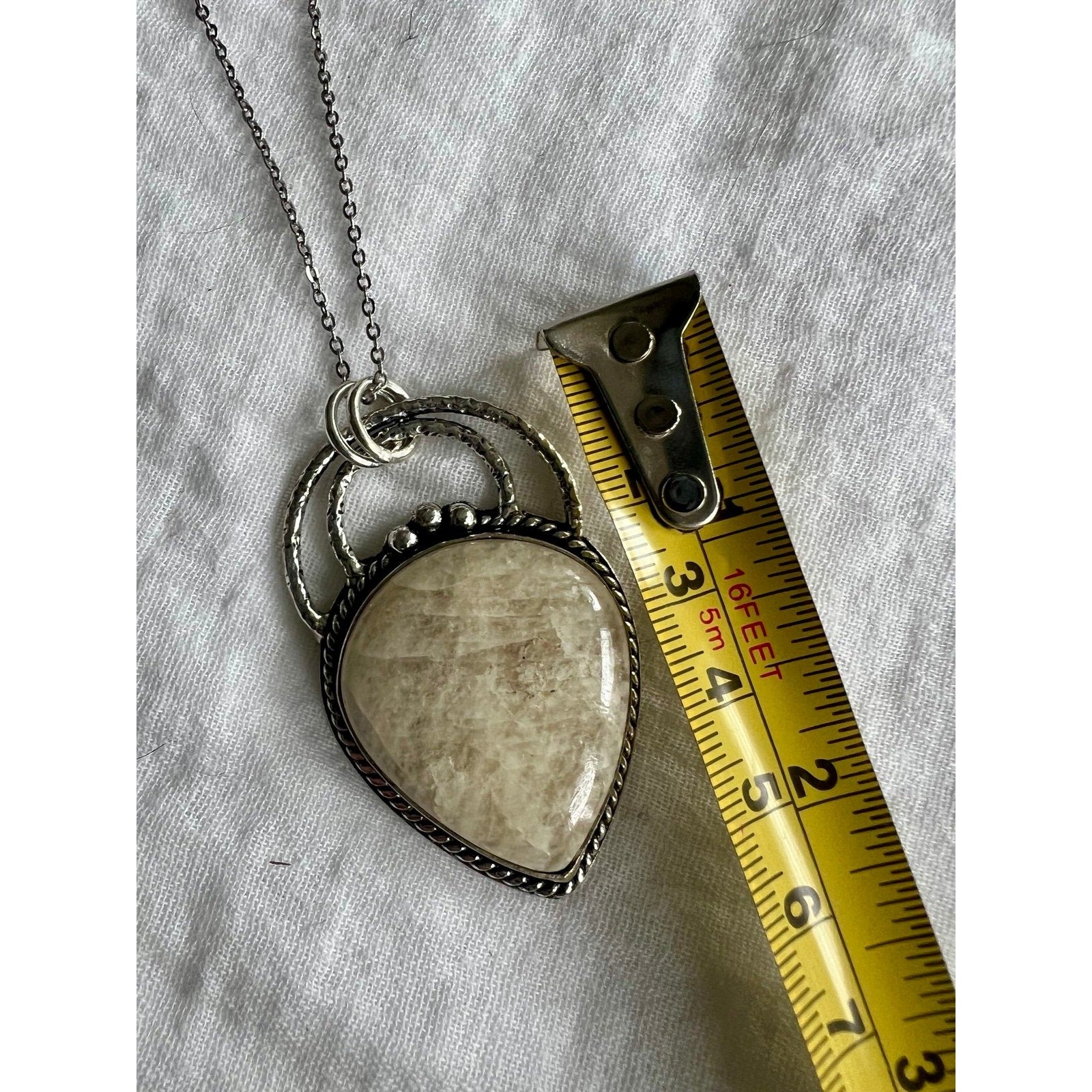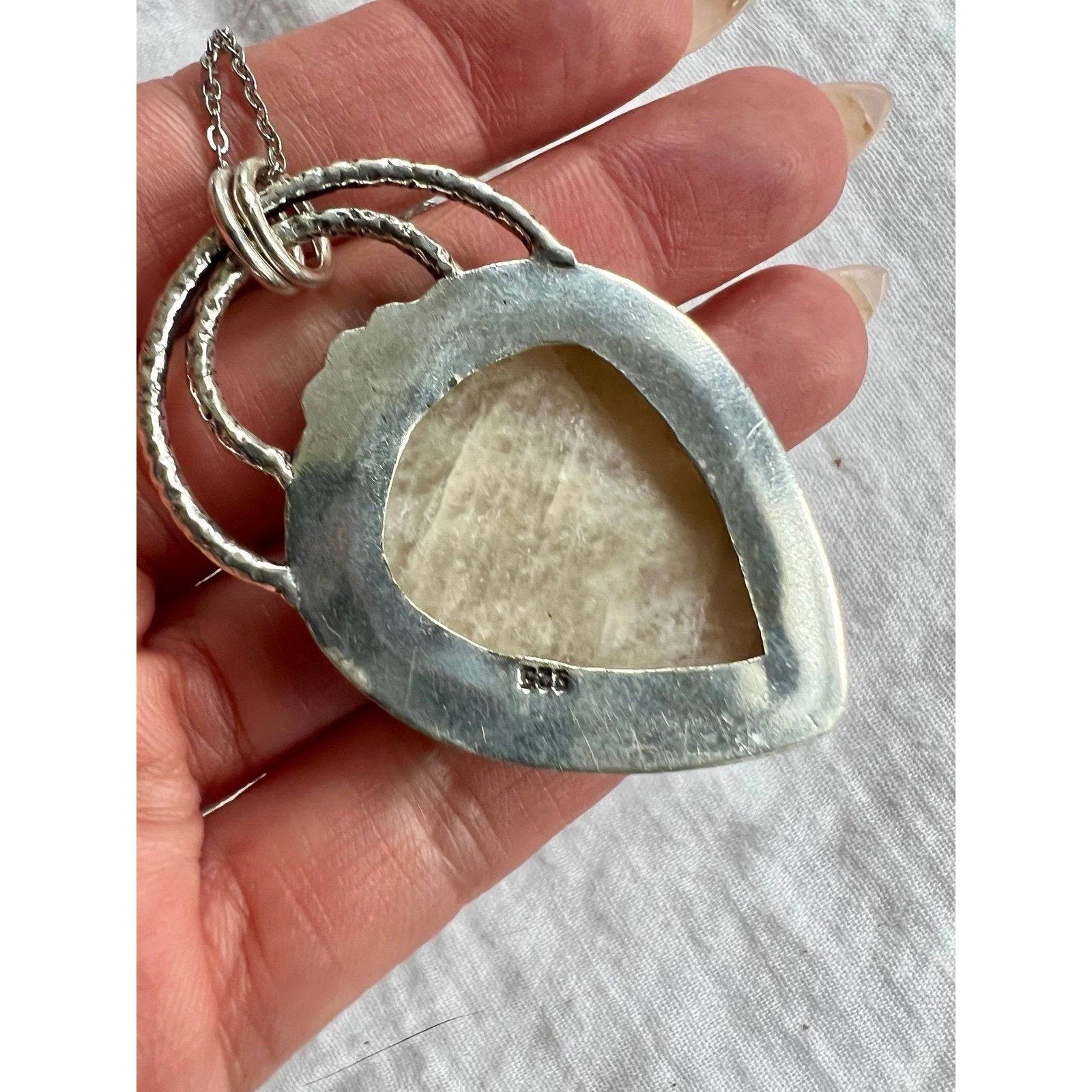 925 Heart + Solar Chakra PEACH MOONSTONE Pendant Necklace