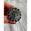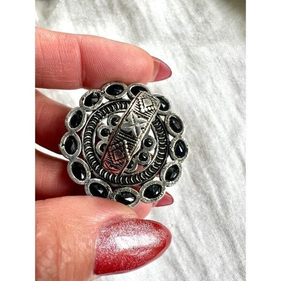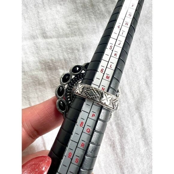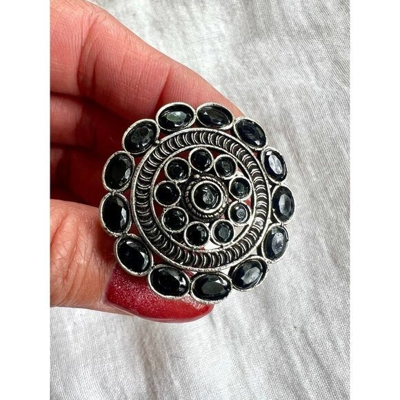 925 Huge! Ornamental Black Spinel Mandala Ring 7.5, 8.5