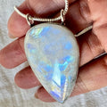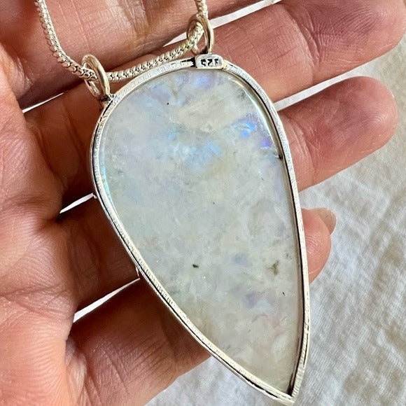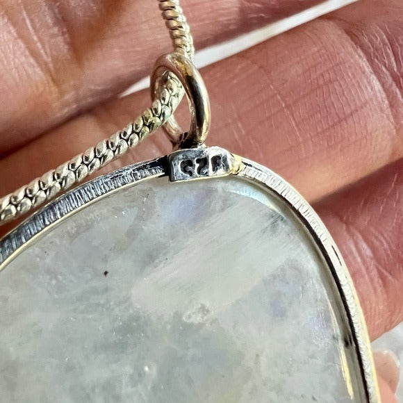 925 INCREDIBLE FLASH! Huge Rainbow Moonstone Pendant Necklace
