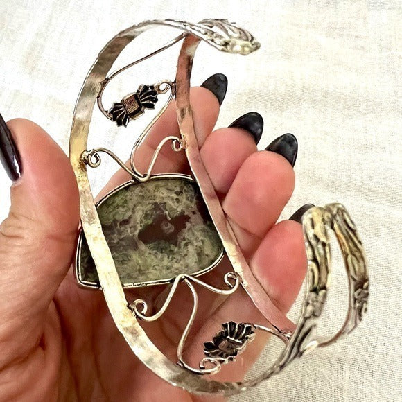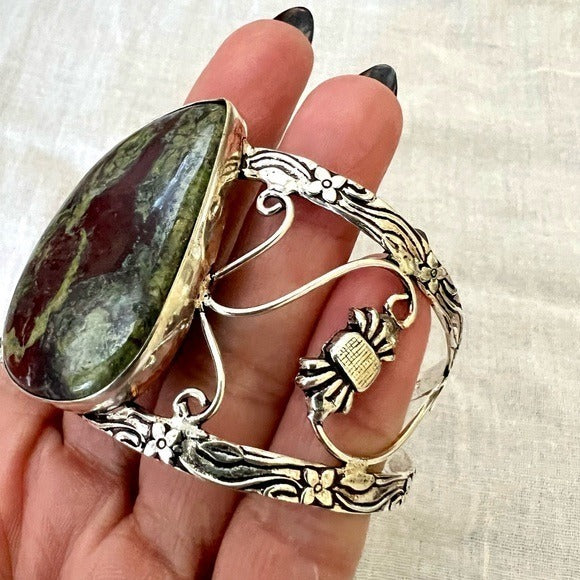 925 Kundalini Dragons Blood Bloodstone Cuff Bracelet