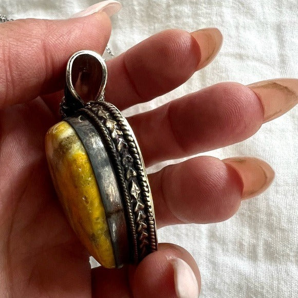 925 Life Purpose Bumble Bee Jasper Pendant Necklace