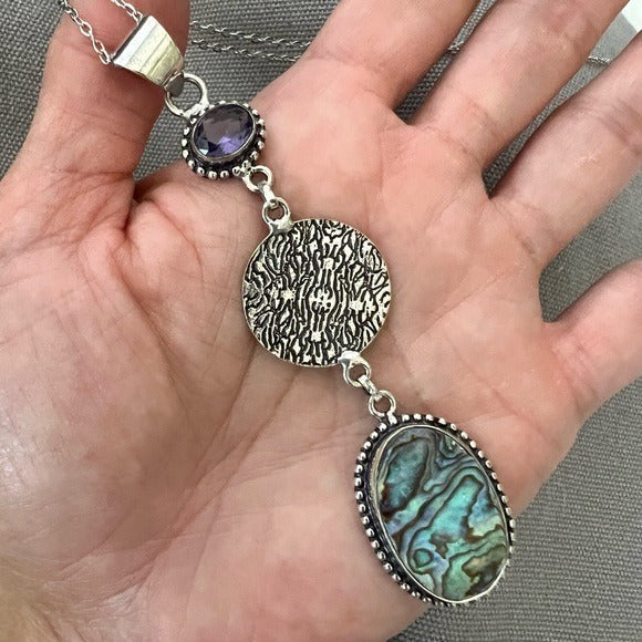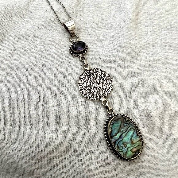 925 LONG Abalone Shell Cleavage Pendant Necklace