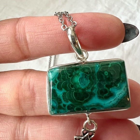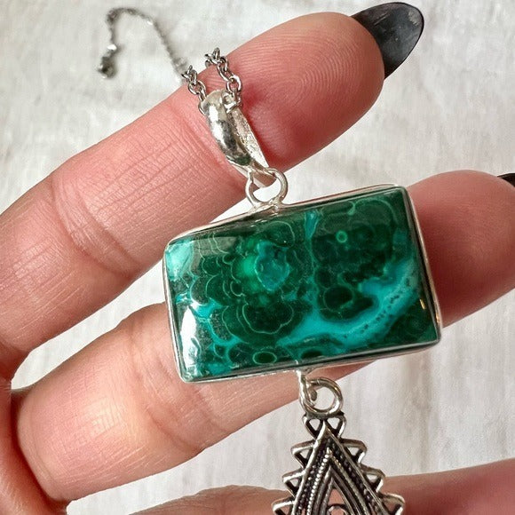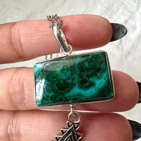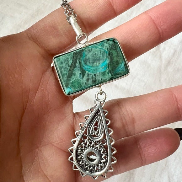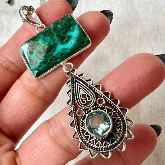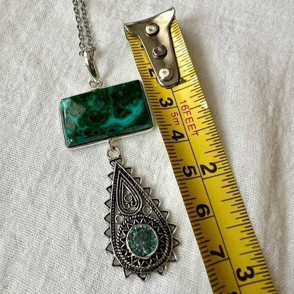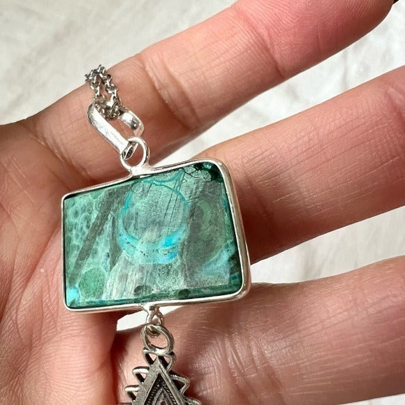 925 Malachite + Chrysocolla SWIRL Chandelier Pendant Necklace