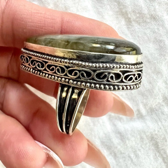 925 Massive! Lightning Flash Labradorite Ring 6.75