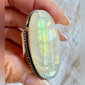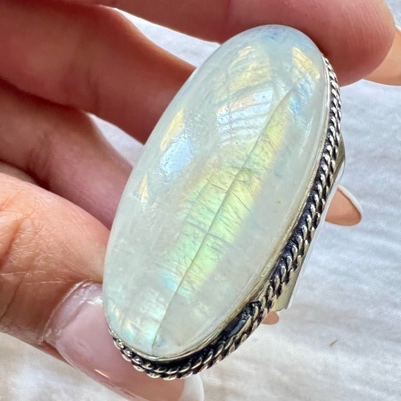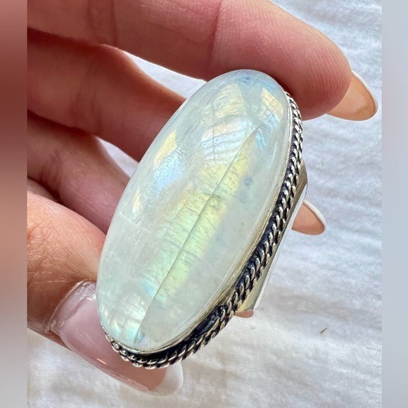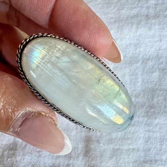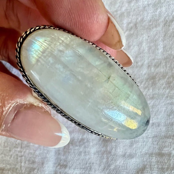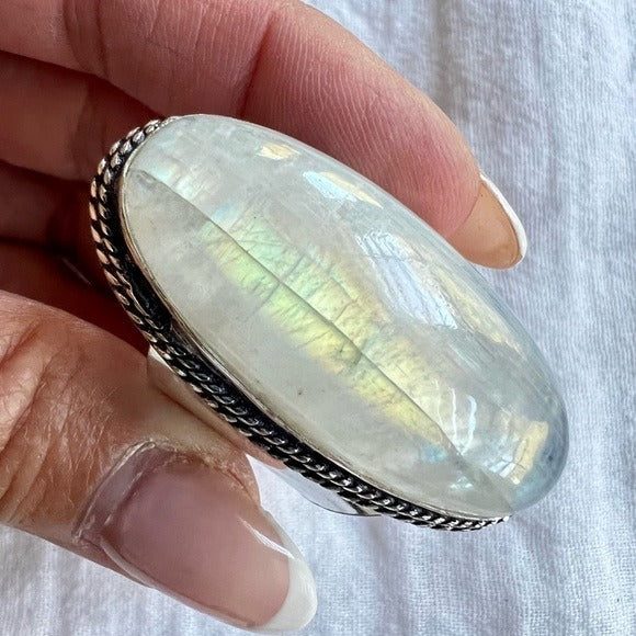 925 MASSIVE! Rainbow Flash Moonstone Statement Ring 10.25