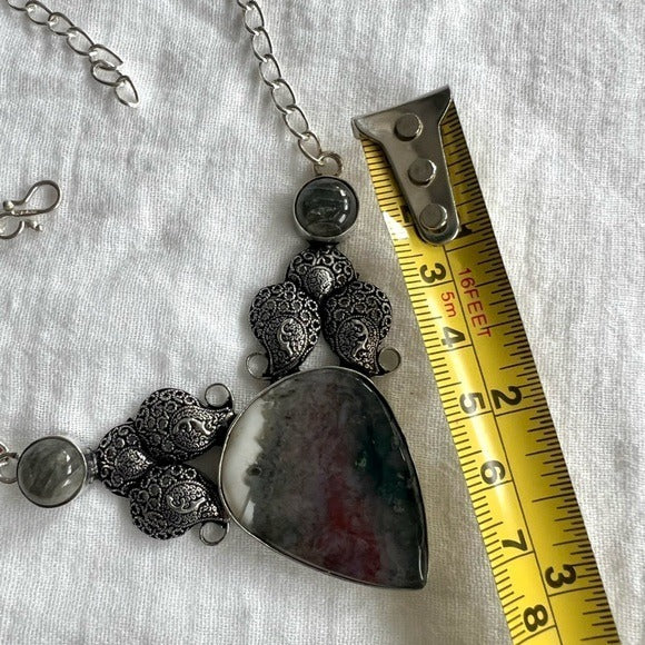 925 MIX Green + Red MOSS AGATE + Flash Labradorite Necklace