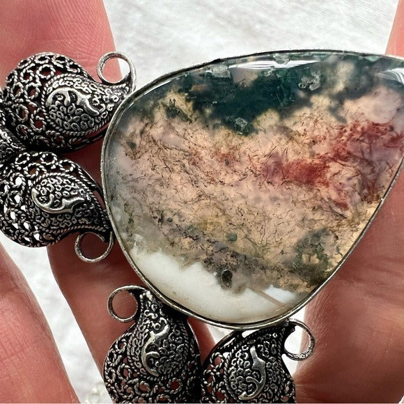 Moss Agate is a stone of new beginnings. Refreshes the soul and enables you to see beauty in all you behold. It reduces sensitivity to weather and environmental pollutants. It attracts abundance in wealth and improves self-esteem. Develops strength and the ability to get along with others. Inspires new ideals after periods of stagnation.
