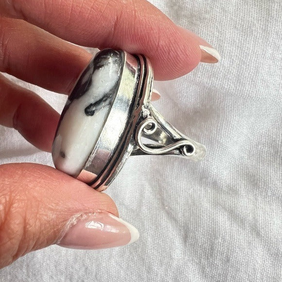 925 Moon Energy White Buffalo Jasper GORGEOUS Ring 10.5