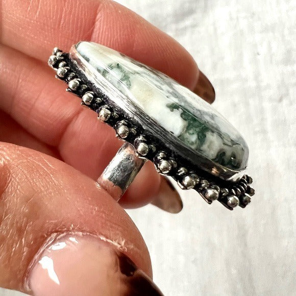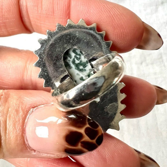 925 Mother Earth Moss Tree Agate Ring 7.5