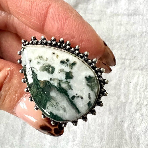 925 Mother Earth Moss Tree Agate Ring 7.5