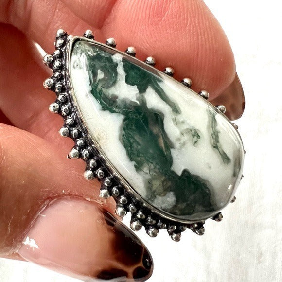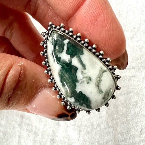 925 Mother Earth Tree Agate Teardrop Ring 8