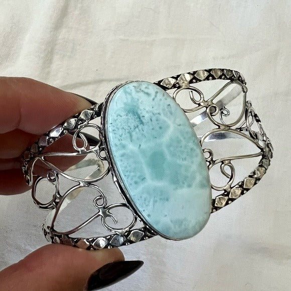 925 Ocean Blue Caribbean LARIMAR Cuff Bracelet