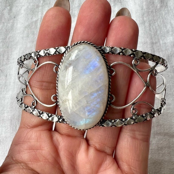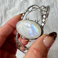 925 OMG Ethereal Rainbow FLASH MOONSTONE Cuff Bracelet