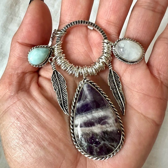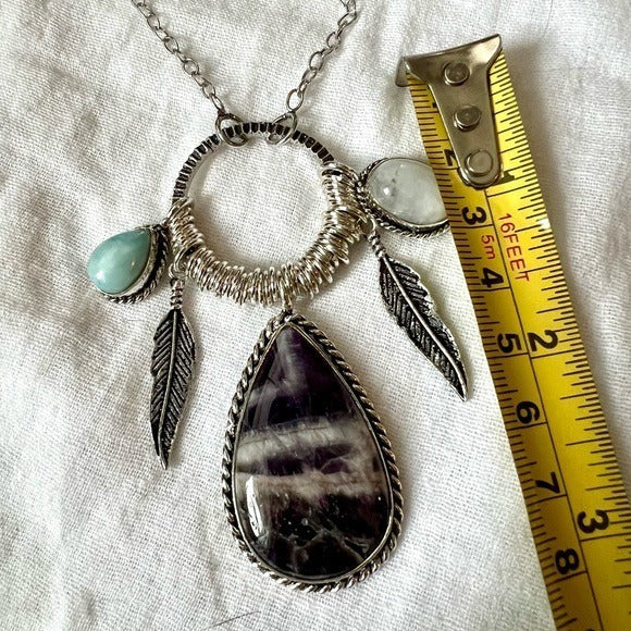 925 OMG OMG! Dream Amethyst + Larimar + Flash Moonstone Charm Necklace Pendant