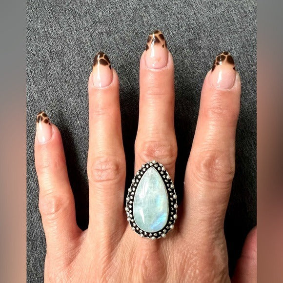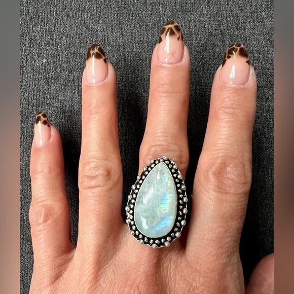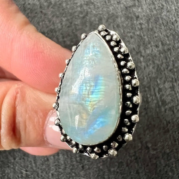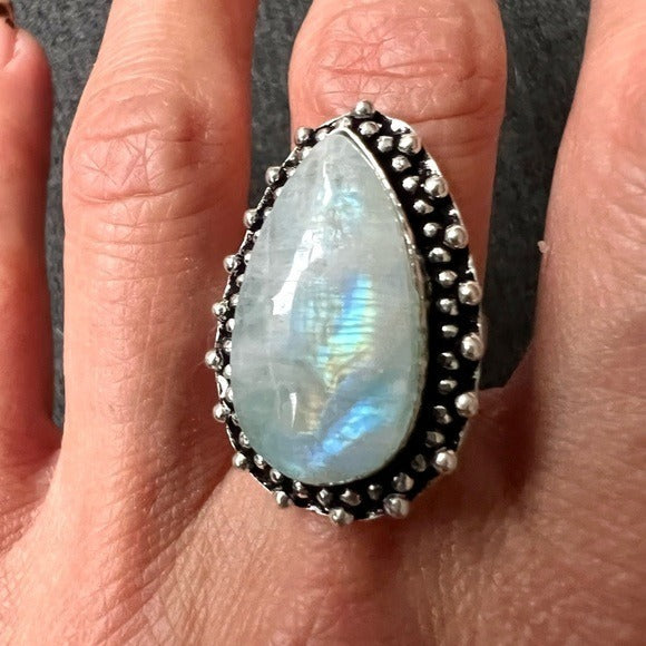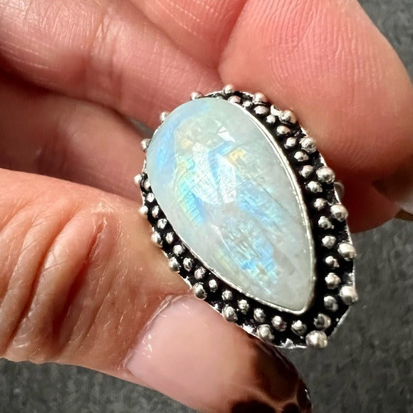 925 OMG OMG Rainbow FLASH Moonstone Ring 7.25