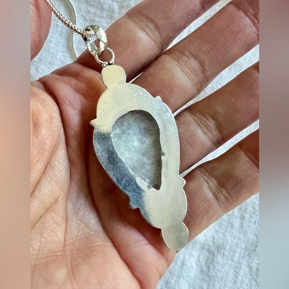 925 OMG OMG! STUNNING Rainbow Flash Moonstone Pendant Necklace