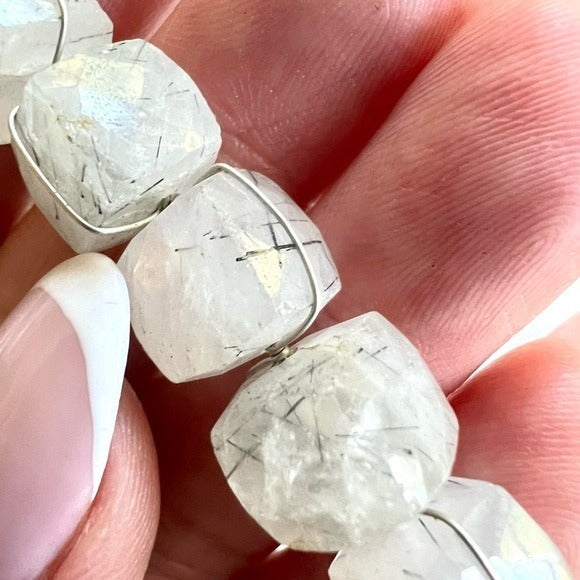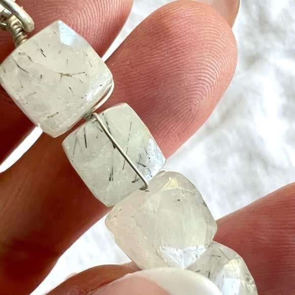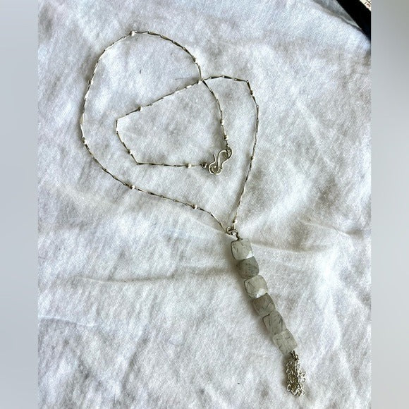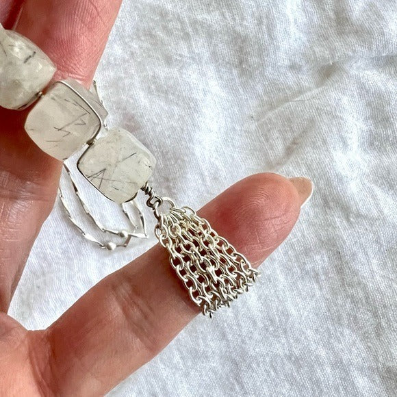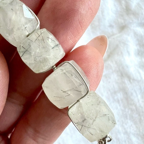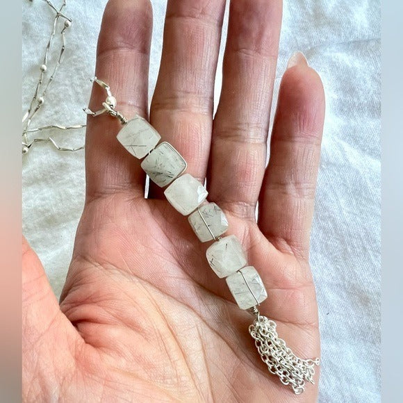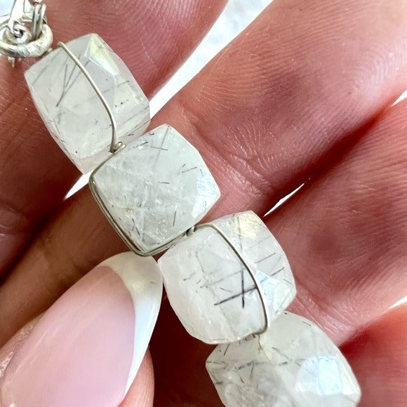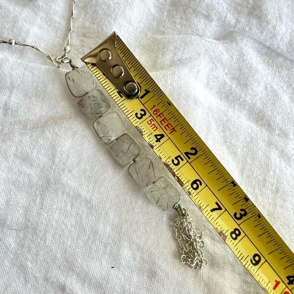 925 OMG STUNNING Cubed Tourmalated Quartz Long Cleavage Necklace Pendant