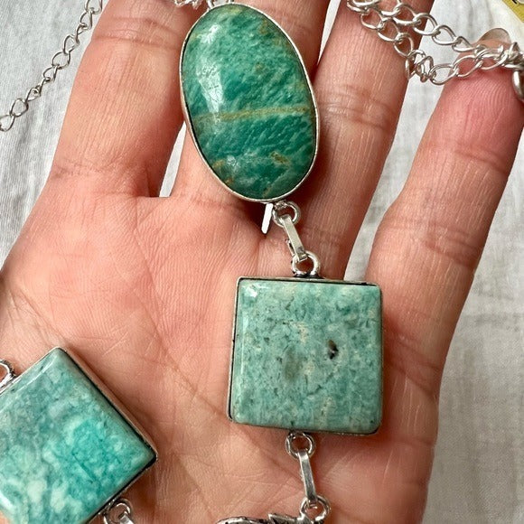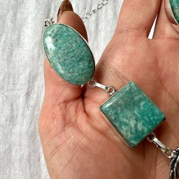 Amazonite is a stone of peace, truth, harmony, and communication. It gently soothes the nerves, and it’s energies can be felt to the touch. This stone radiates blue rays full of rejuvenating vibrations that are here to calm the heart. Any environment that Amazonite is placed in will calm the energy and fill the air with positive energies. It’s been called the “peacemaker stone" due to its communicative abilities. Our heart and throat become linked, thus allowing the truest thoughts to surface and be spoken with ease.