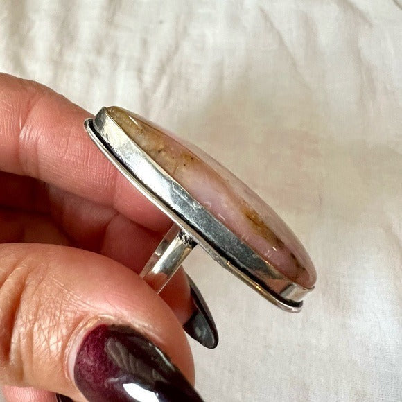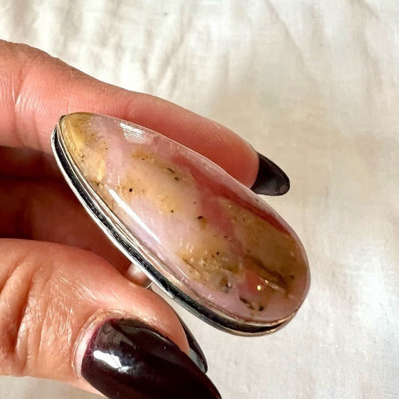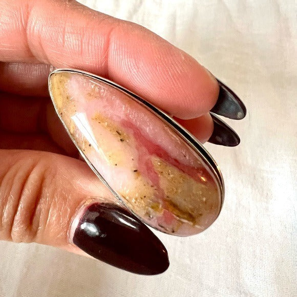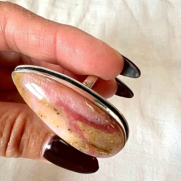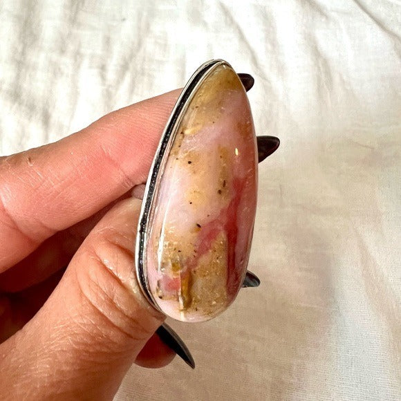 925 Peruvian Pink Opal Long Teardrop Ring 9