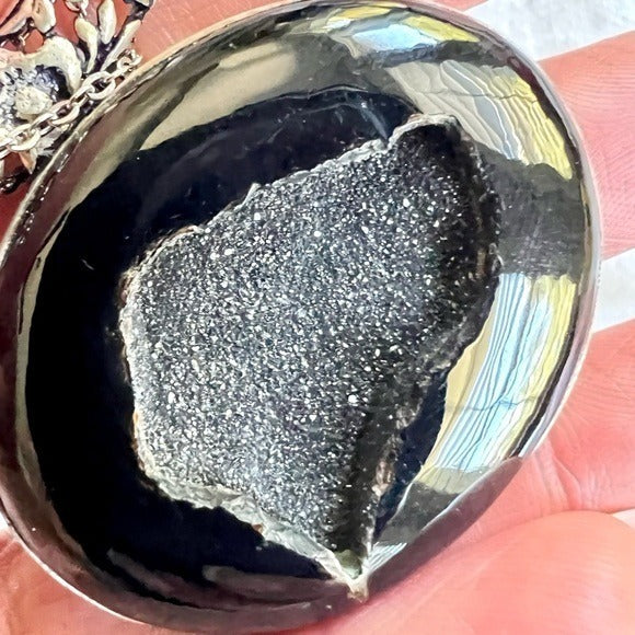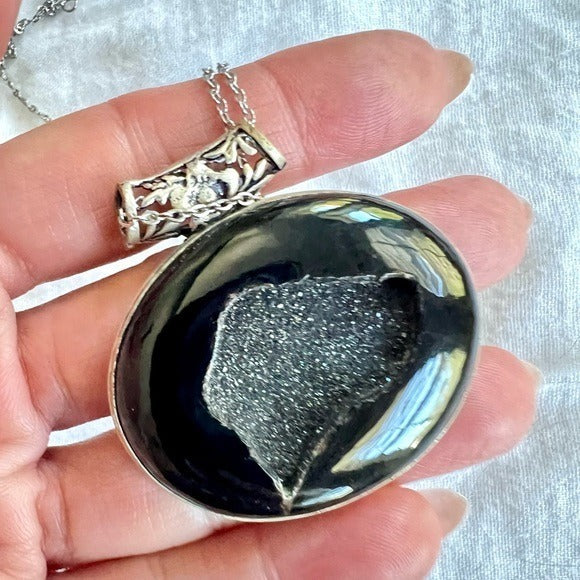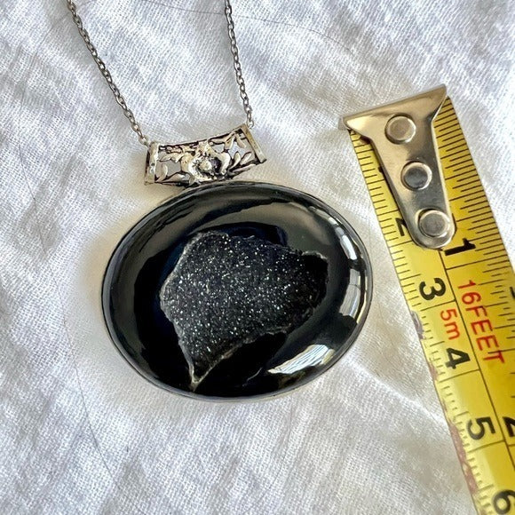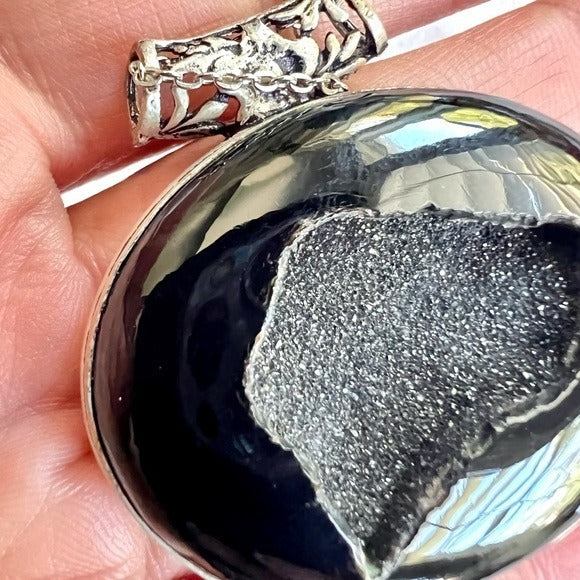 925 Protection Black ONYX Druzy Crystal Necklace Pendant
