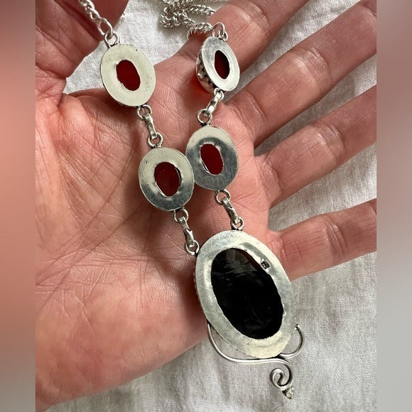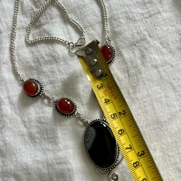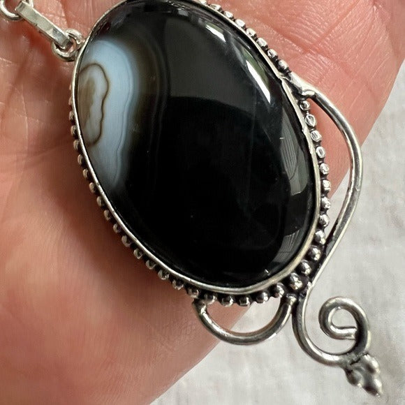 925 Protection Combo! Banded Black Onyx + Carnelian Necklace Pendant