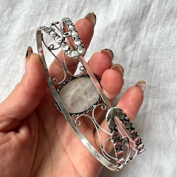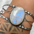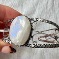 925 Purple Blue Flash Rainbow Moonstone Cuff Bracelet