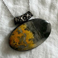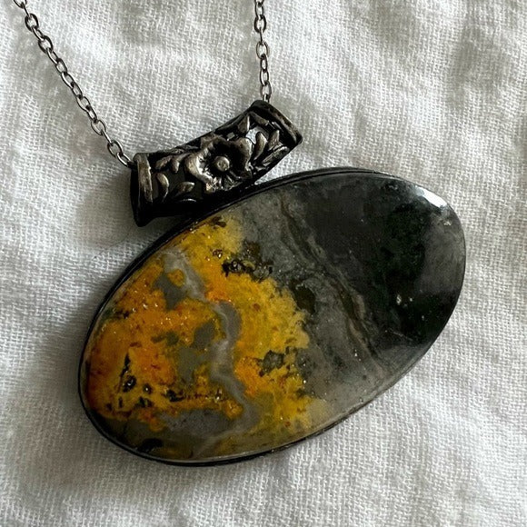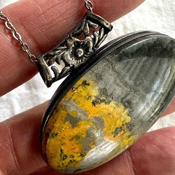 925 Quantum Bumble Bee Jasper Antiqued Pendant Necklace