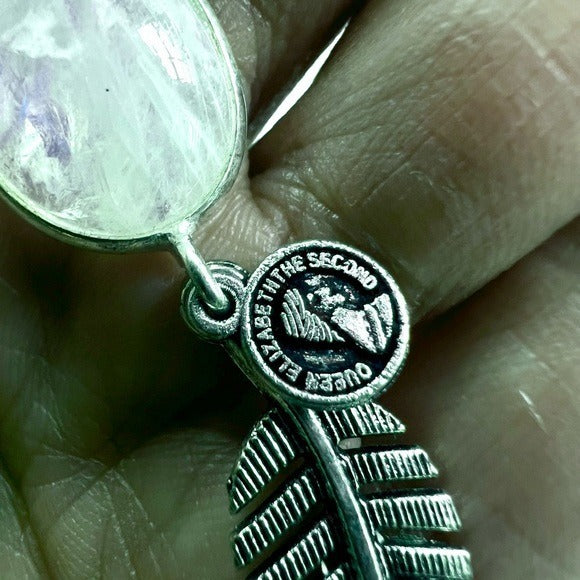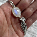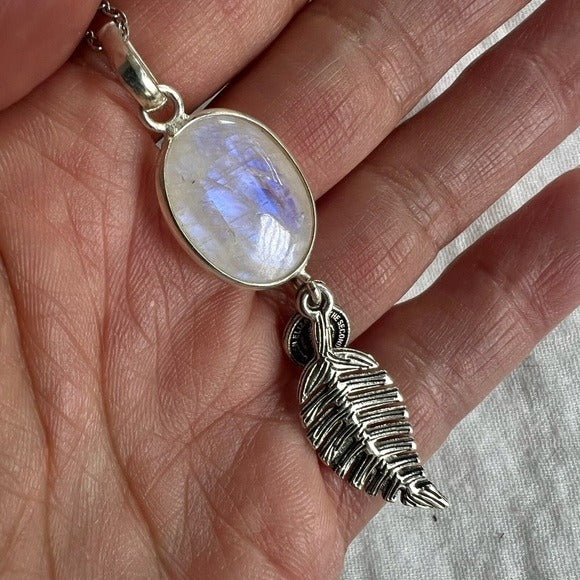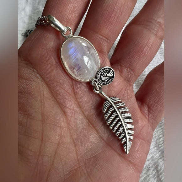 925 Rainbow Flash Moonstone Feather Lucky Pendant Necklace