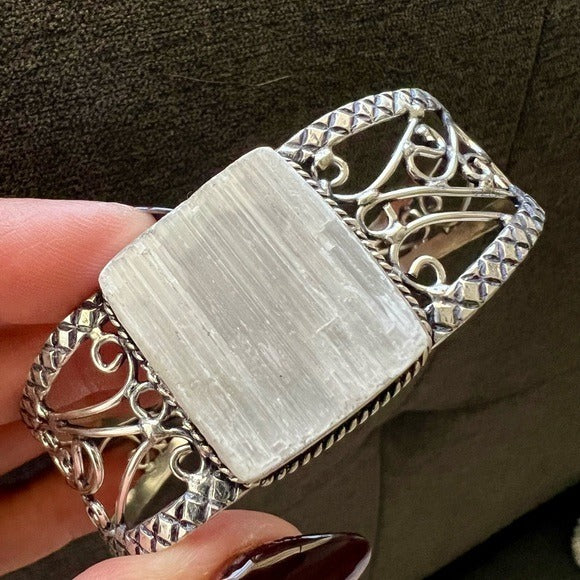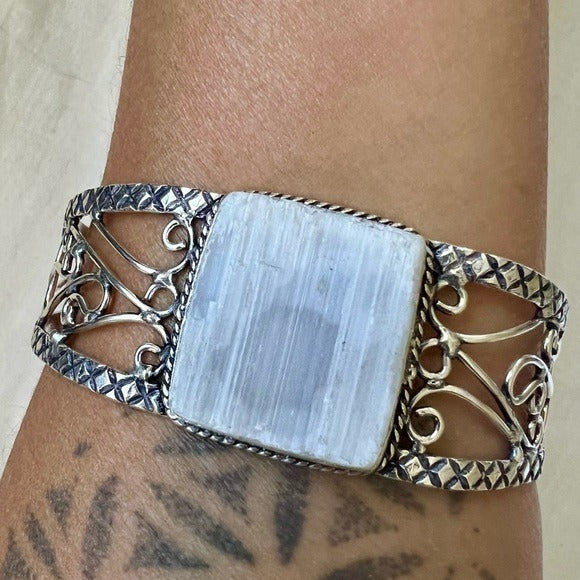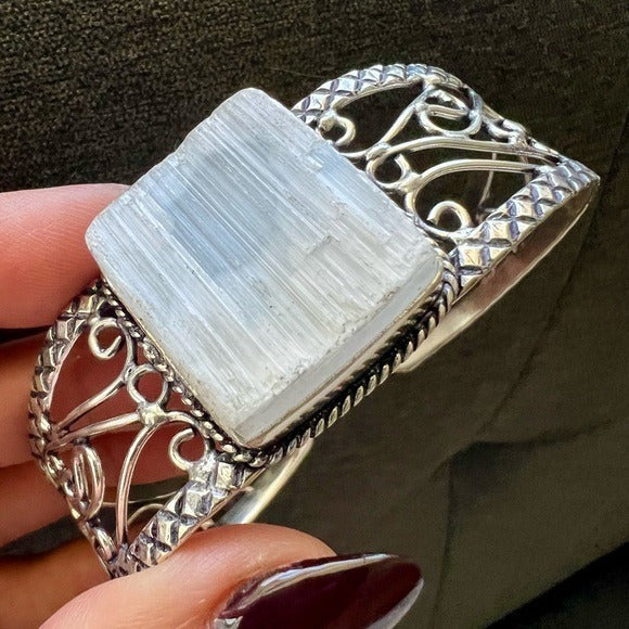 925 RAW Selenite Crystal Charging Cuff Bracelet