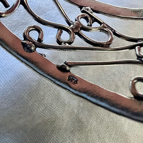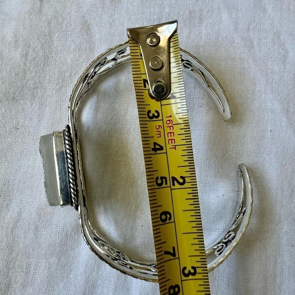 925 stamped sterling silver overlay. Please see all photos for condition, as this is raw selenite.