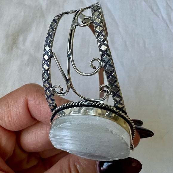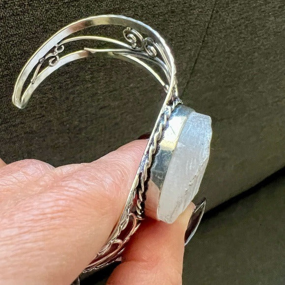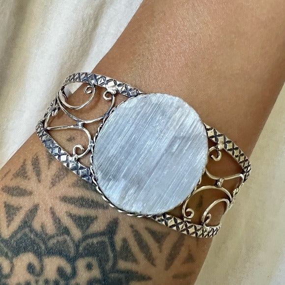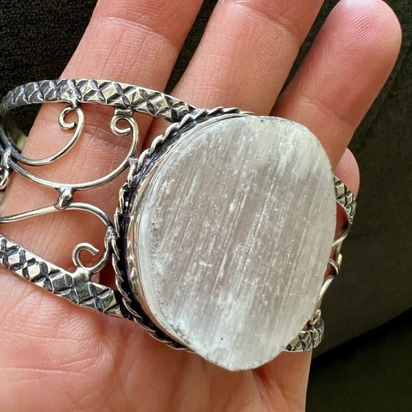 925 Round Crystal Charging SELENITE Cuff Bracelet