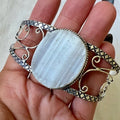 925 stamped sterling silver overlay. Please see all photos for condition, as this is raw selenite.