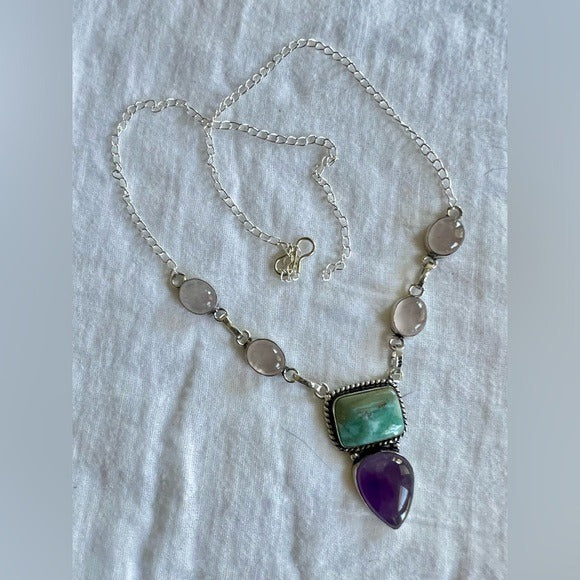 925 Royal Amethyst + Larimar + Rose Quartz Necklace! DIVINE!