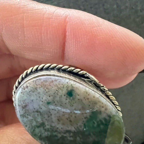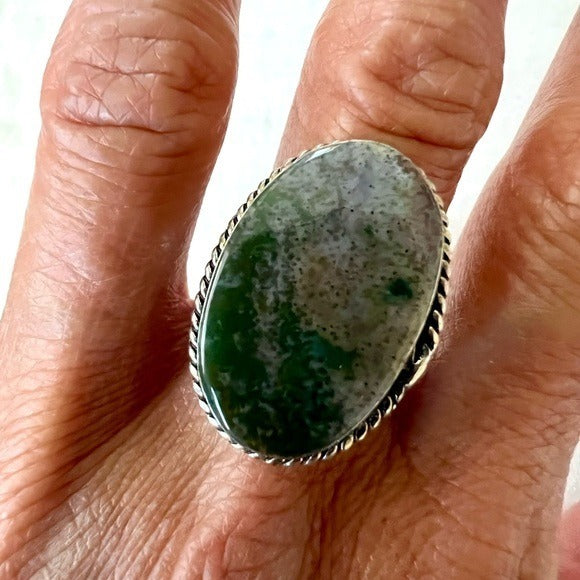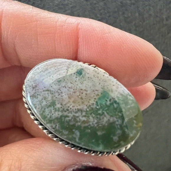 Moss Agate is a stone of new beginnings. Refreshes the soul and enables you to see beauty in all you behold. It reduces sensitivity to weather and environmental pollutants. It attracts abundance in wealth and improves self-esteem. Develops strength and the ability to get along with others. Inspires new ideals after periods of stagnation.