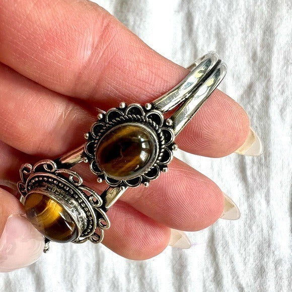 925 Solar Chakra Courage! Triple Tigers Eye Bracelet Cuff