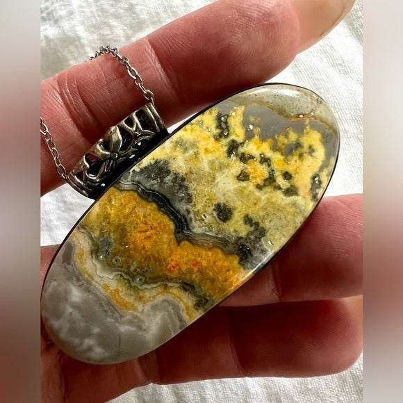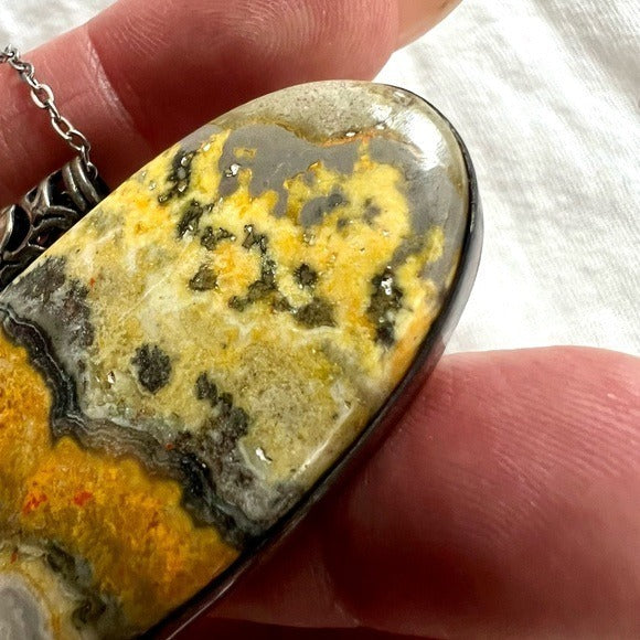 925 Souls Growth Bumble Bee Jasper Pendant Necklace