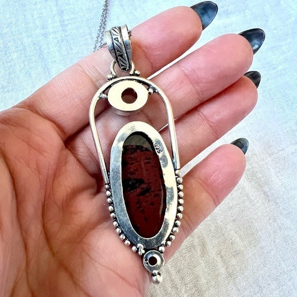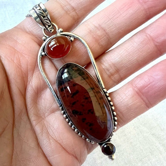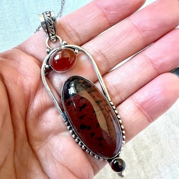 925 STRENGTH Mahogany Obsidian + Carnelian Pendant Necklace