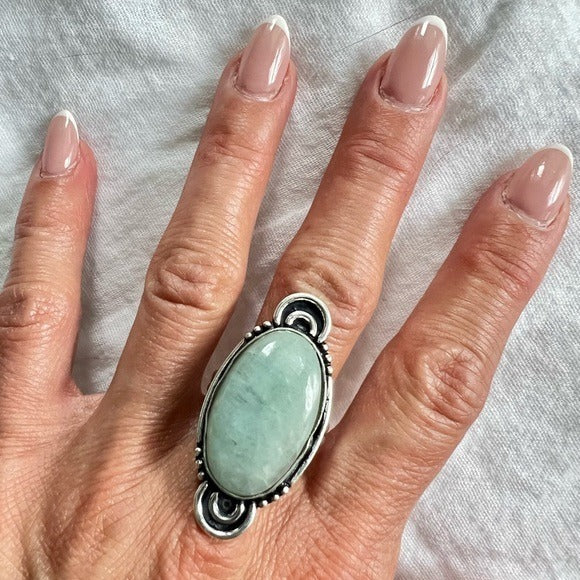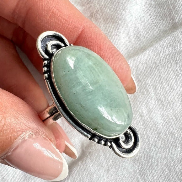 925 Stunning Aquamarine Cabachon Ring 11