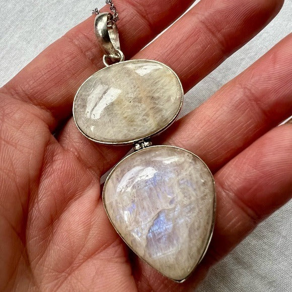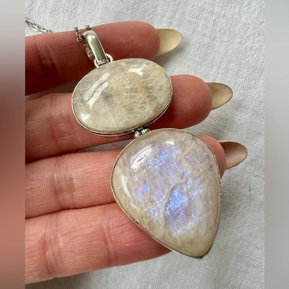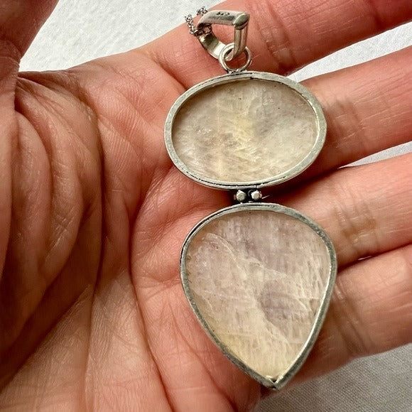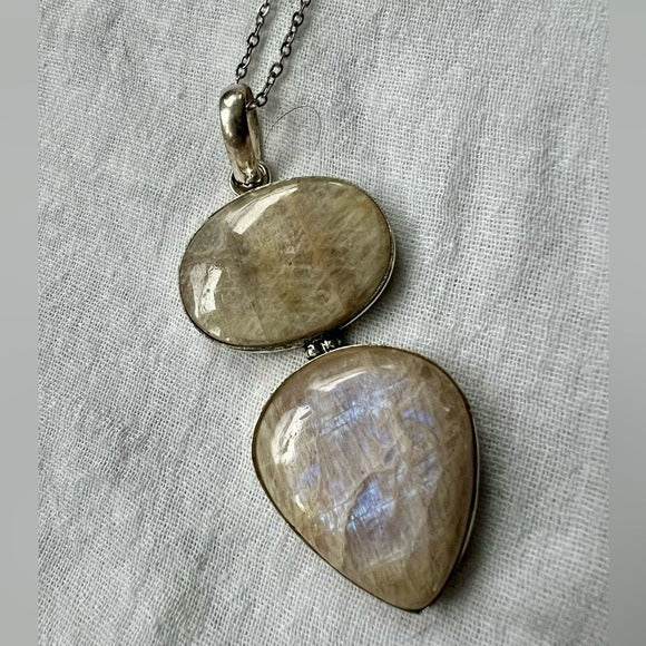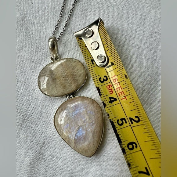 925 STUNNING! Double FLASH PEACH MOONSTONE Pendant Necklace