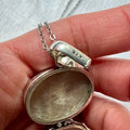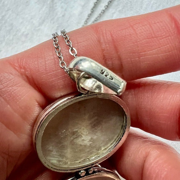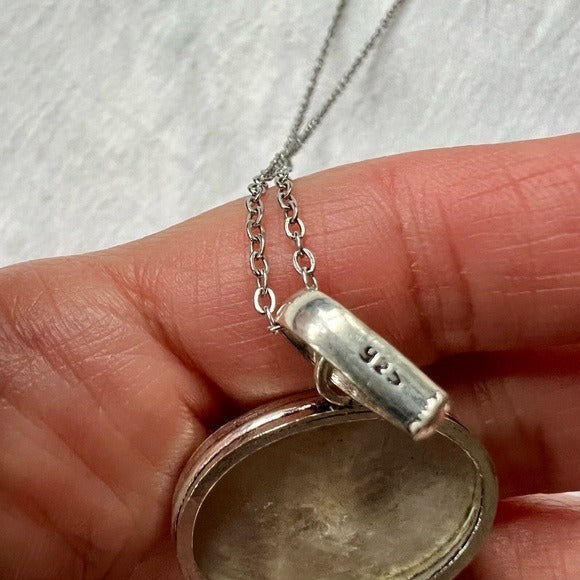 925 stamped, sterling silver overlay. Comes on an 18" chain.
