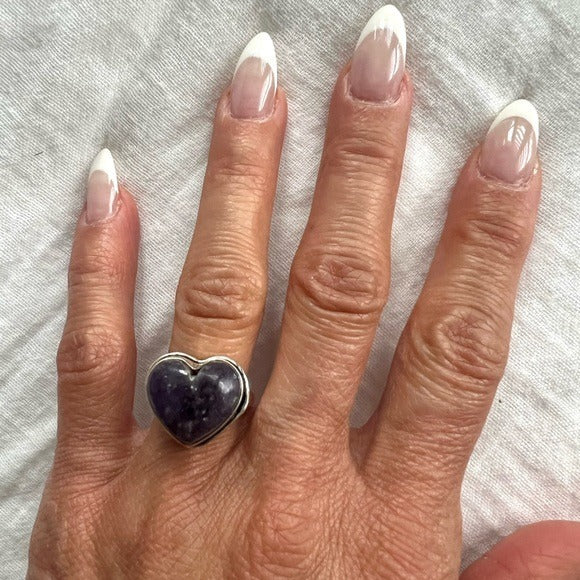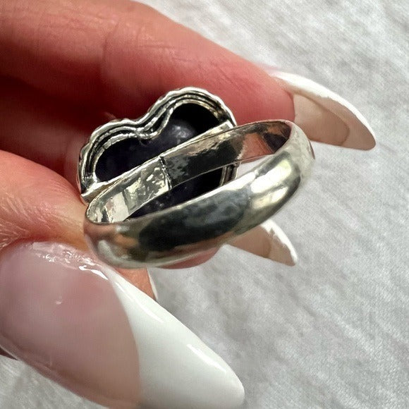 925 Third Eye Lepidolite Heart ❤️ Ring 6.25