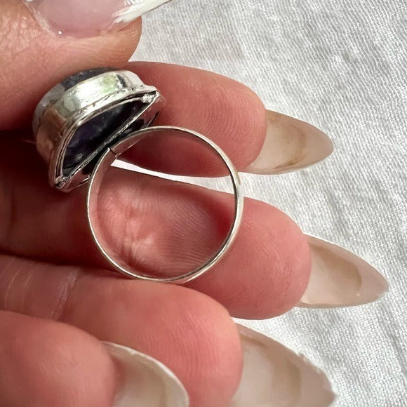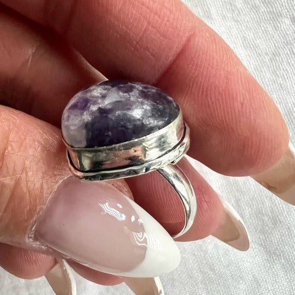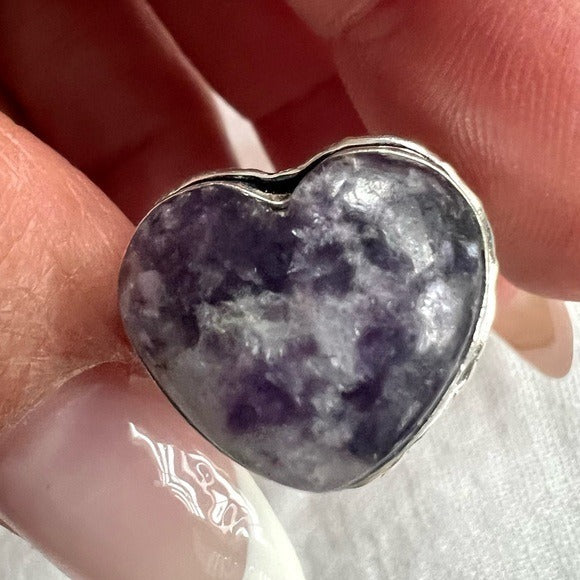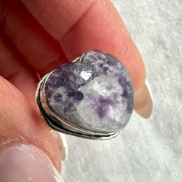 925 Third Eye Lepidolite Heart ❤️ Ring 7.25