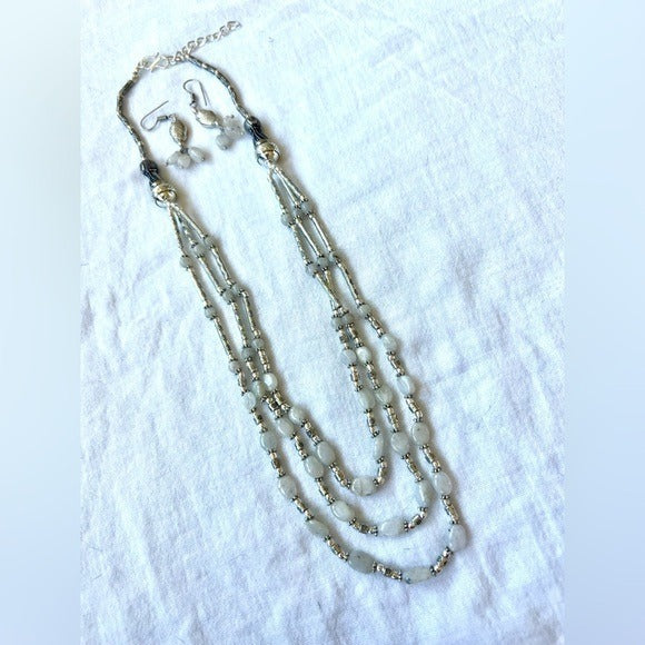 925 Tri-Strand Moonstone Necklace + Earrings SET