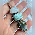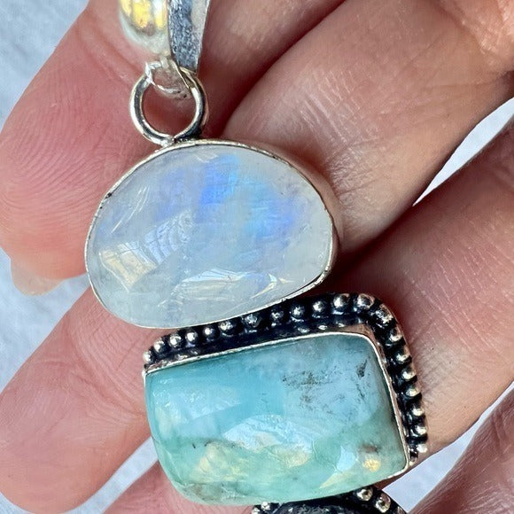 925 Trifecta Rainbow Flash Moonstone + Larimar + Labradorite Pendant Necklace