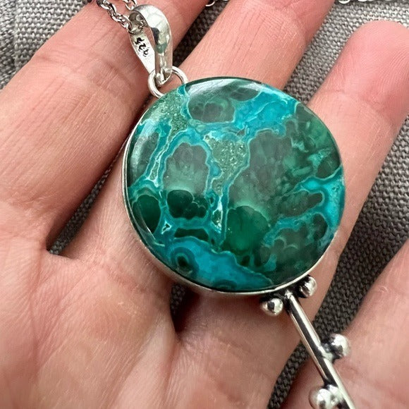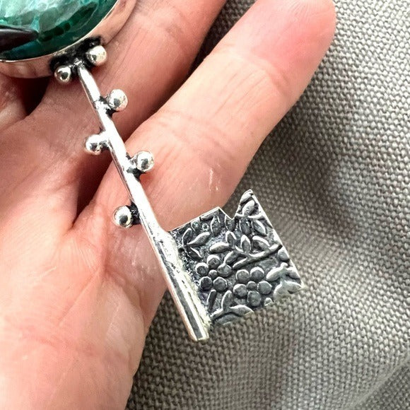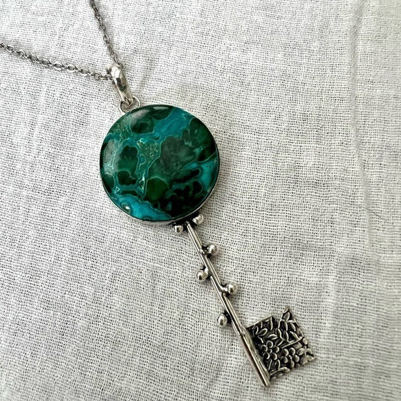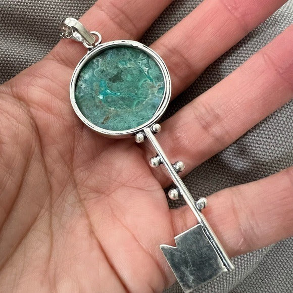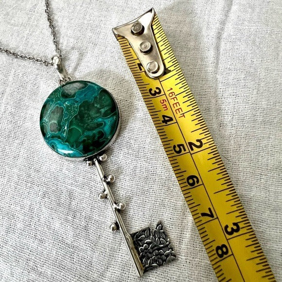 925 Unlocked Malachite Chrysocolla KEY Pendant Necklace