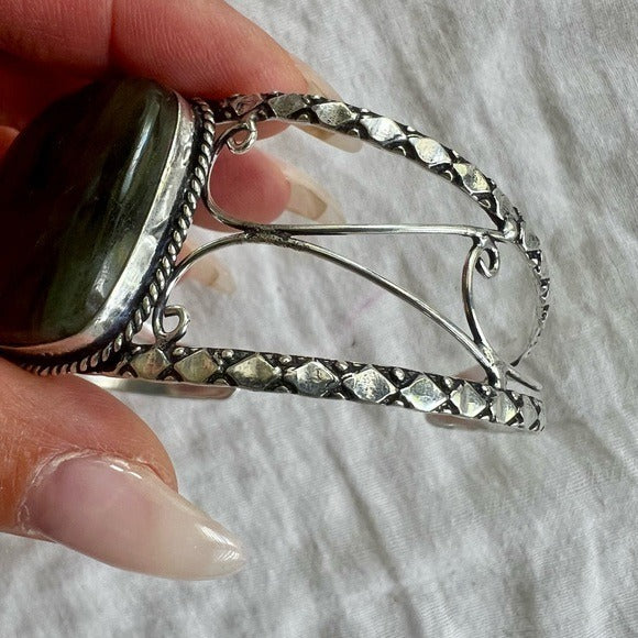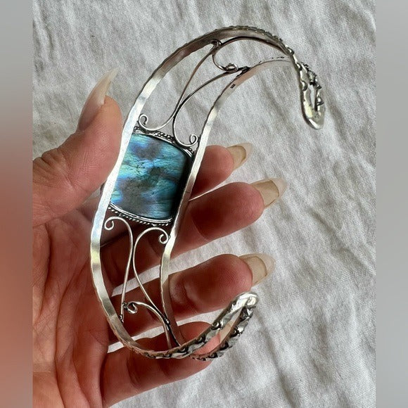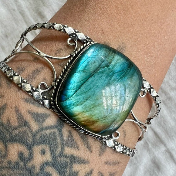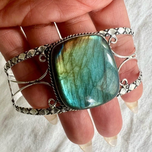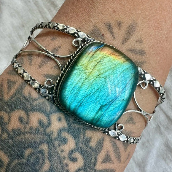925 WHOA Gorgeous! Rainbow Flash Labradorite Cuff Bracelet